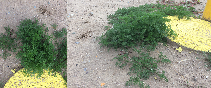 Plants grow in dense clusters and easily displace native vegetation. During growth the plants can cause severe allergic reactions, both dermal and respiratory. Infestations spread rapidly along roadways and open fields in residential areas, dried dense patches are highly flammable, and the smoke is caustic.